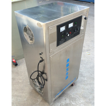 大型水处理也包括饮用水的罐装流水线。饮用水中一个重要的问题是菌落超标。利用空气源一体化臭氧发生器可以使水中的臭氧浓度达到3PPM以上。且臭氧分解后的残留只有氧气,而溶解了大量氧气的饮用水对人体健康的正面作用被越来越多的人意识到。市场上的富氧水就是这样制造出来的。